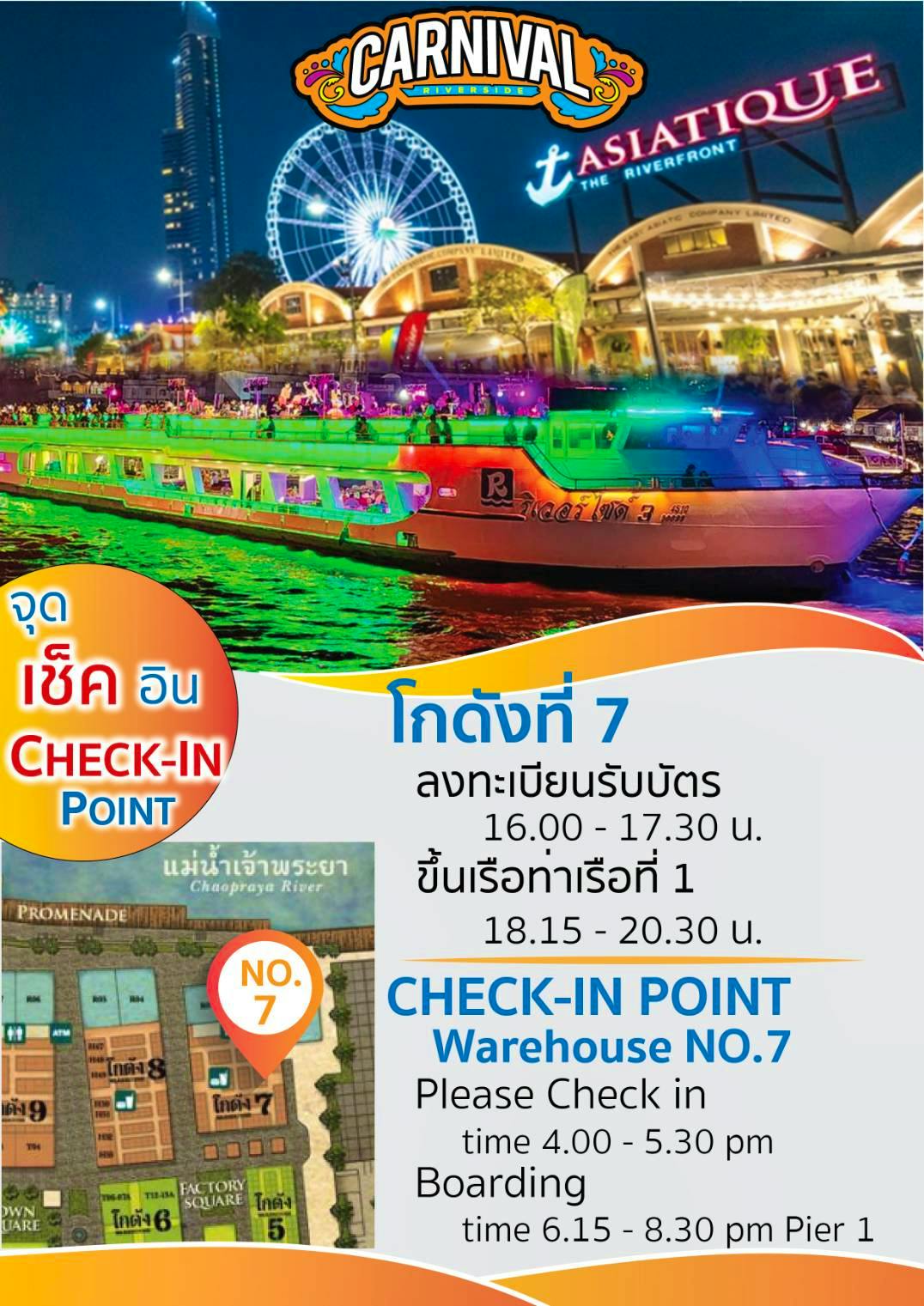 | 18.00 | ลงทะเบียน ณ จุดเช็คอิน ท่าเรือ ริเวอร์ซิตี้ |